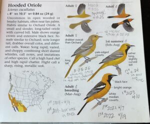 I record my initial observations of the oriole in my trusty field guide.